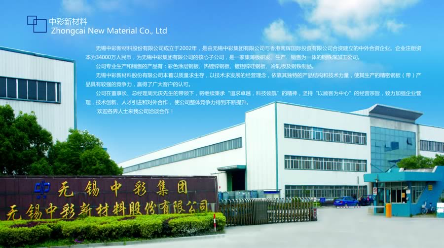 無錫中彩新材料股份有限公司(原無錫新大中鋼鐵有限公司)成立于2002年,是由無錫中彩集團(tuán)有限公司與香港南輝國際投資有限公司合資建立的中外合資企業(yè)。企業(yè)注冊資本64000萬元,為無錫中彩集團(tuán)有限公司的子公司, 是一家集薄板研發(fā)、生產(chǎn)、銷售為一體的鋼鐵深加工企業(yè)。 公司占地面積300余畝,資產(chǎn)規(guī)模超20億元,公司主要生產(chǎn)銷售熱鍍鋅鋼板(年產(chǎn)20萬噸)、彩鋼板(年產(chǎn)25萬噸)、鍍鋁鋅(年產(chǎn)15萬噸)、冷軋鋼板(年產(chǎn)60萬噸)、鍍錫鋼板(年產(chǎn)16萬噸)、熱浸鍍鋁鋼板(年產(chǎn)10萬噸)。 公司現(xiàn)有員工580余人,擁有大專以上學(xué)歷員工占總員工的28%以,公司擁有一個市級工程技術(shù)中心,一個省級工程技術(shù)中心,是國內(nèi)鋼鐵行業(yè)唯一一家國家級實(shí)驗(yàn)中心的中試基地。 |